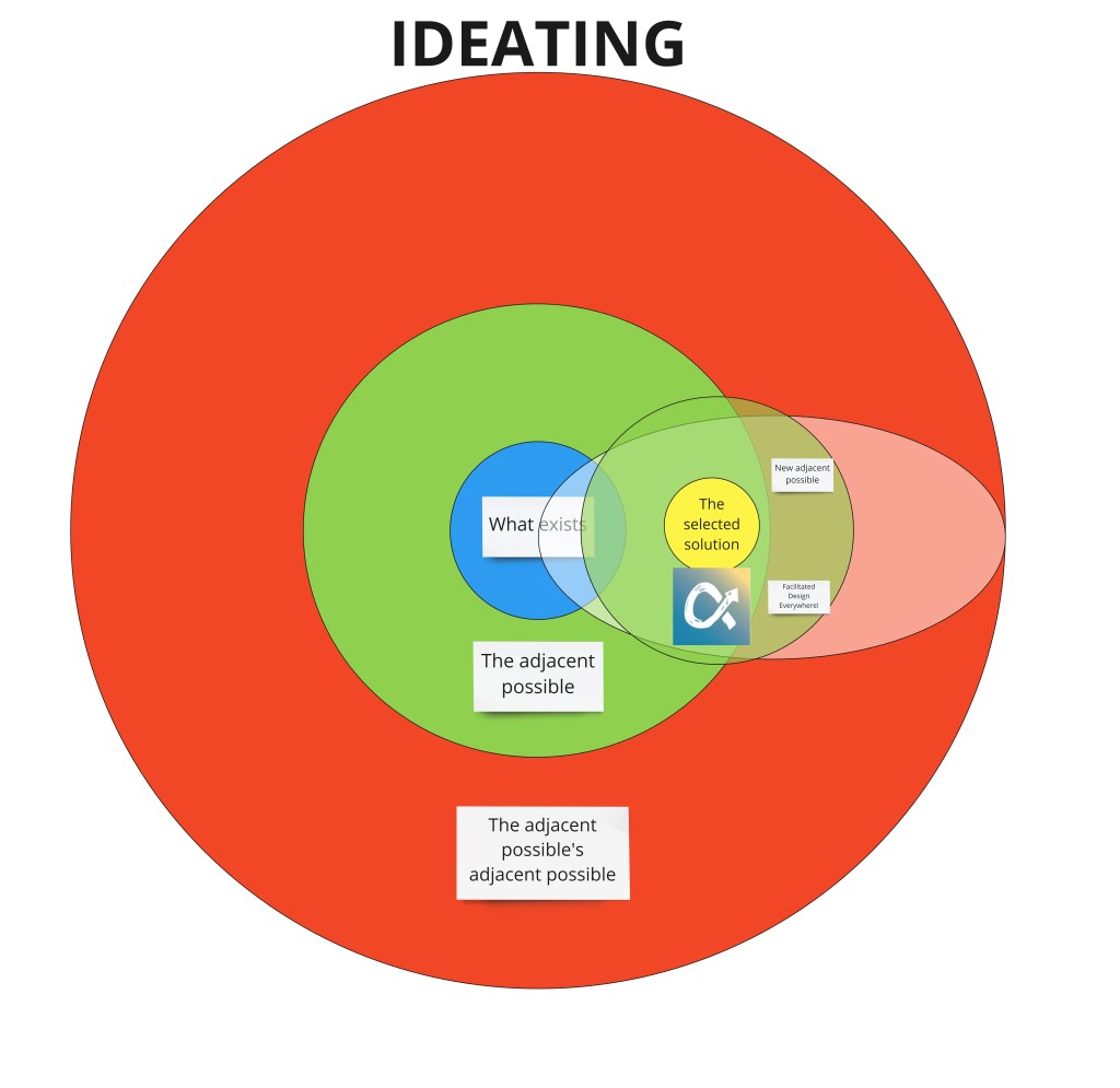 This is like with a lot of my efforts to get facilitated practices adopted by units I belonged to or across the Air Force. What I found was that getting these things adopted even at a small scale was beyond my adjacent possible. By myself, I couldn’t convince people to take the time necessary to experience these methods. I also needed significantly more practice as a practitioner. I needed support. I was burning out. So what I ended up ultimately doing was starting a community for facilitation and design within the DoD- that’s Agitare – because something much more fundamental needed to happen for lone facilitators themselves before we could even start to worry about adoption and application at scale.