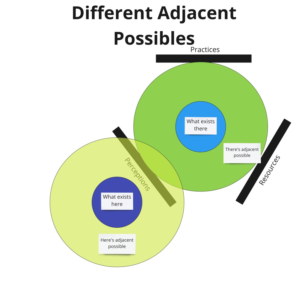 Because of this, we have to discover what is within the adjacent possible for a particular context. We can’t just take what works for another context and apply it to our own.